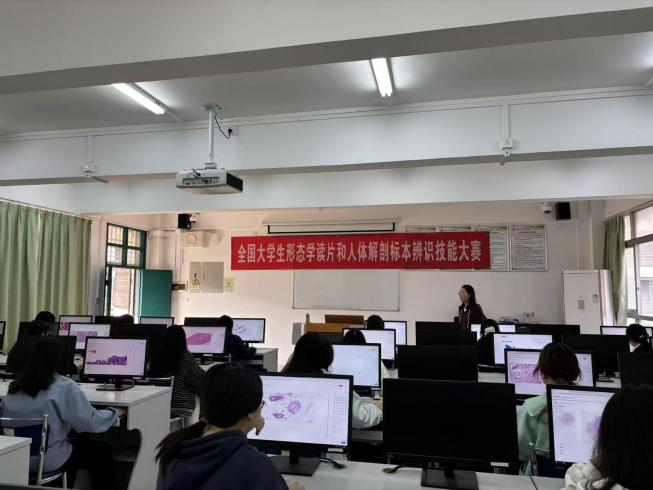 经前期的校内遴选赛推选出72人参加本次国赛,内容涵盖组织学、病理学、微生物学、人体解剖学四大学科。